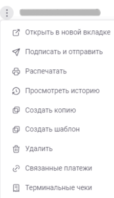 - Вы можете также нажать на три точки слева каждого черновика, чтобы подписать и отправить, распечатать, создать копию, шаблон, или удалить черновик.